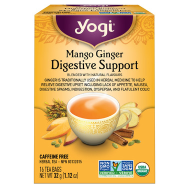 Support comfortable digestion with a cup after every meal. This spiced herbal blend combines ginger, used for centuries by Ayurveda practitioners to support symptoms of indigestion, with delectable mango, antioxidant-supplying rooibos, and traditional warming spices including cinnamon and cardamom.