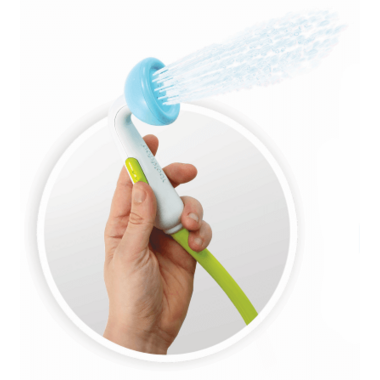 Yookidoo Elephant Baby Shower is a hand-held shower head providing a soothing flow of water over babies and kids alike. Elephant base pumps water from the tub.  Elephant is 4" wide.  Requires 3 AAA batteries. Shop our batteries here.