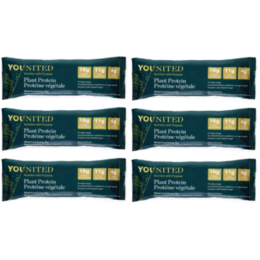 - 6x Younited Plant Protein Whole Food Energy Bar Chocolate, 60g