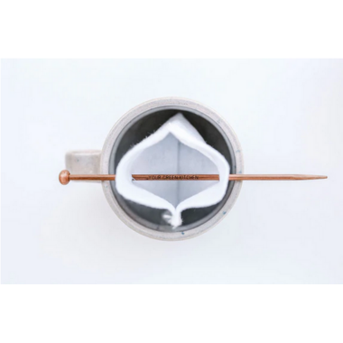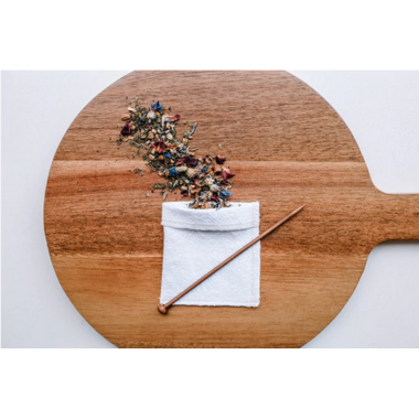 Set of 3 GOTS organic Cotton Tea Bags with a bamboo balancing stick.