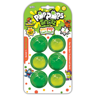 Pop Pop Snotz are the ultimate unpacking and collectible experience for kids combining bubble popping surprise, collectible hunt cravings and gross slimy fun. It's a full senses experience: sound of the pop, touch of the bubble and slime, look of the collectibles and bright colors of the bubbles. Find the all the collectibles inside your slime bubbles.  Keep popping to collect them all!  Each series contains 60 collectibles; some are common, some are special edition glow in the dark, some are rare, and some are super rare!
