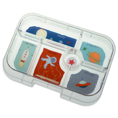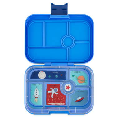 Prepare for lift-off! The Rocket-themed Yumbox Original makes packing healthy school lunches fun and easy. The 6-compartment tray features playful outer space illustrations and a built-in portion guide to support balanced eating.