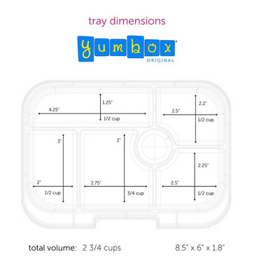 - IDEAL PORTION SIZES FOR HEALTHY EATING: Foster wholesome eating habits with Yumbox Original's 6 compartments, each offering a 1/2 cup capacity, and a round dip/treat well. These perfect portion sizes ensure your child enjoys a balanced meal while minimizing food waste.