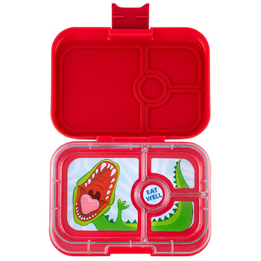 Yumbox Panino 4 Compartment Sandwhich Size Wow Red with Dinosaur Tray