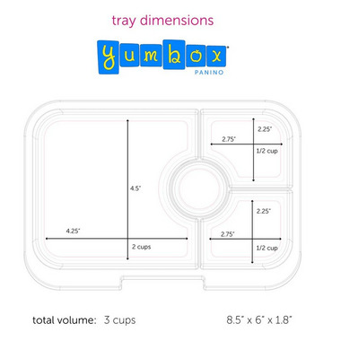 - Perfect Portions: 4 compartments: 2-cup main, two 1/2 cup sides, and a 1 oz dip/treat well.Total capacity: 3 cups + dip.