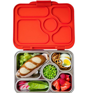 Yumbox Presto Stainless Steel 18/8 5-compartment Food Tray; Designed for kids and adults. Durable construction with stainless steel tray and sturdy lid with silicone seal.