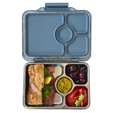 Yumbox Pret Stainless Steel 4 Compartment Bento Box Paris Blue Glitter