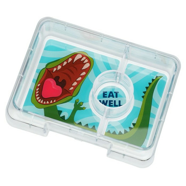 Yumbox Snack Size 3 Compartment Bento Box Surf Blue with Dinosaur Tray