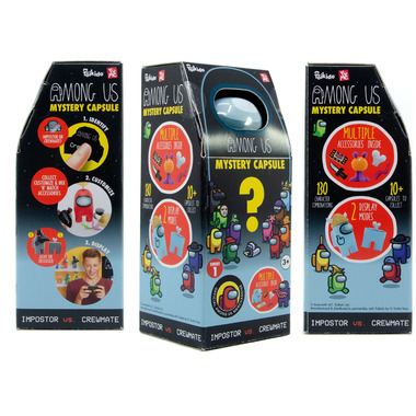 Continue the ultimate game of teamwork and betrayal AFK with the Among Us Mystery Capsules, will you identify the Imposter? First task - find the code card and use the heat of your thumb to reveal if you're the deadly Impostor, or Crewmate open to sabotage. Next, unbox your 4" character figure and unique accessories. Imposter or Crewmate choose from 2 display modes, alive or deceased - you decide!