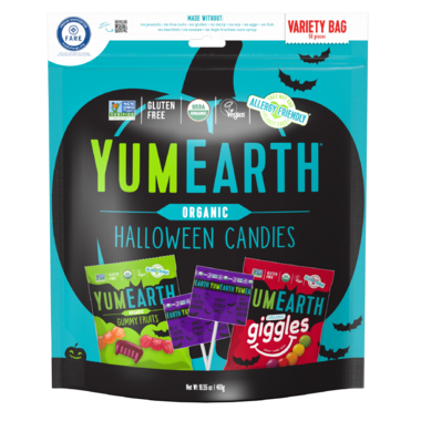 Welcoming all allergy friendly trick-or-treater's! The YumEarth Organic Halloween Variety Bag includes 50 individually-wrapped packs ready for school lunches or trick-or-treaters.