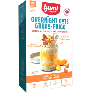Over night oats with the great taste of Peaches & Cream. A healthy alternative to oatmeal and cereal. No cooking, no heating, just soak overnight in your favorite milk. Meal prep breakfast for the week in 2 minutes.