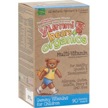 Yummi Bears Organics Multi-Vitamin has 16 essential vitamins, minerals, and nutrients for healthy growth and development. Plus, this formula is gluten free, gelatin free, dairy free, GMO free and made with all natural flavours and colours.
