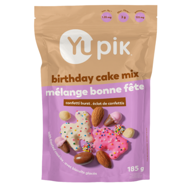 Yupik Birthday Cake Mix is a delightful blend of colorful sugar cookies, chocolate almonds, mini rainbow nonpareils, and much more. This in-house blend is a festive mix, perfect for fun snacking or to add to unique creations.