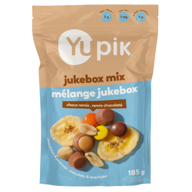 Yupik Jukebox Mix is a blend of dried bananas, peanuts & chocolate truffles. Inspired by retro diners & banana splits, this blend is a decadent crunchy and smooth snack.