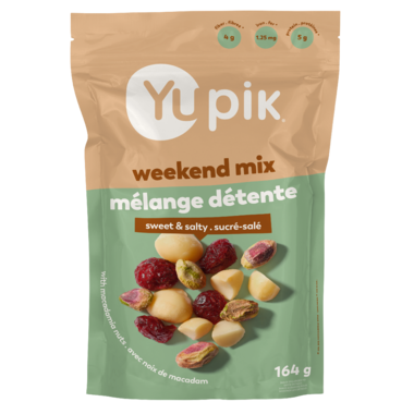 Yupik Weekend Mix is a lightly salted blend of macadamia nuts, pistachios & cranberries. This flavourful blend is ideal for snacking and baking applications.