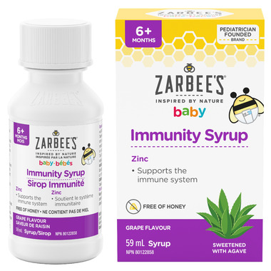 - Naturally Delicious grape Flavour: Both kids and parents love that this Baby's Immunity Syrup comes in a tasty natural grape flavour. This product comes in a 59 millilitre bottle and includes an oral dosing syringe to help make giving Zarbee's to your little ones mess-free.