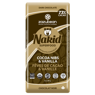 zazubean Nakid Cocoa Nibs & Vanilla 73% Dark Chocolate