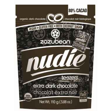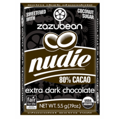 Organic extra dark chocolate that is sweetened with coconut sugar.