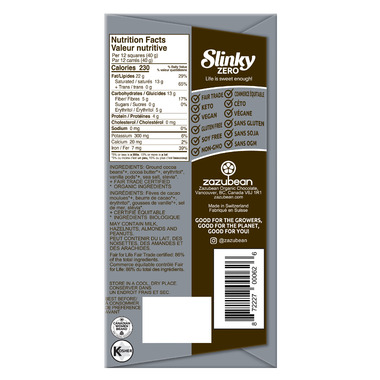 Ground Cocoa Beans*+, Cocoa Butter*+,Erythritol*,Vanilla Pods*+,Sea Salt, Stevia*