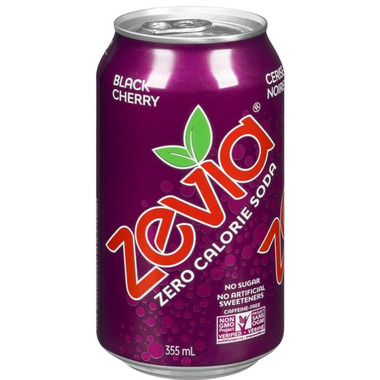 Zevia Black Cherry zero calorie soda is made naturally flavoured with no sugar or artificial sweeteners.