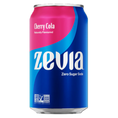 Zevia Cherry Cola is a zero sugar, naturally sweetened soda.