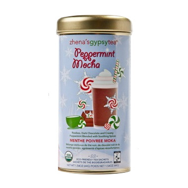 Pure indulgence meets guilt free, calorie free pleasure as you transport yourself with this relaxing blend of fresh peppermint imbued with rich dark chocolate, soothing Rooibos and cheerful, warming spices. Zhena's Gypsy Peppermint Mocha Tea makes the perfect stocking stuffer!