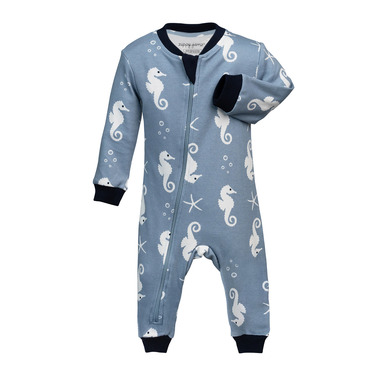 - Front zipper for dressing and a separate inseam zipper for quick and easy diaper changes.
