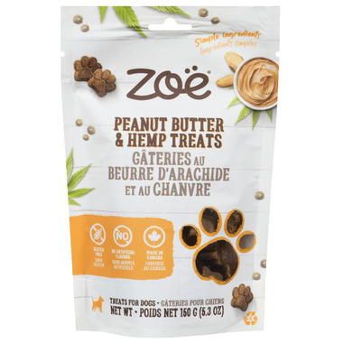 Zoe Peanut Butter & Hemp Dog Treats, 150 g, are proudly made in Canada