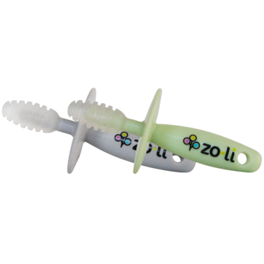 teaching early dental hygiene habits. These sticks have soft nubs to