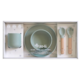 This includes: one of each plate, bowl, cup, spoon, and fork.