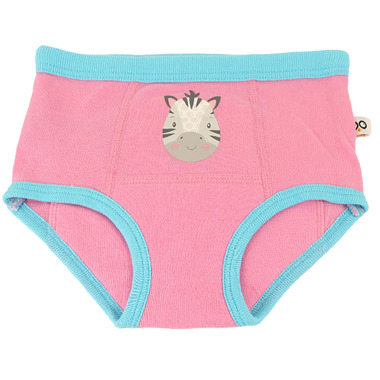 Give them their My First Pair of Underwear. Experts say that after a few weeks of successful potty breaks, a child may be transitioned into training pants before going into regular underwear. Not just training pants, your childs First Pair of Underwear! Available in a variety of animal characters and in sizes 2-4 Years, these unique training pants are made of Super Soft Organically grown Cotton, and have a layer of double sided 8020 CottonPolyester blend terry sandwiched between the layers of organic cotton for extra absorbency where it's needed most to stop leaks, in case an accident occurs.