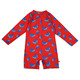 Enjoy worry-free fun at the beach or pool in this adorable rash guard swimsuit crafted with comfortable quick-dry fabric. A front half-zipper offers easy on-and-off and UPF 50+ sun protection means they can splash away all day. Sizes 6-12m and 12-24m feature a snap crotch for super easy diaper changes and toilet breaks.