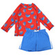 This printed long sleeve rash guard with coordinating swim trunks offers excellent protection from the sun and sand so they can enjoy long-lasting play at the beach or pool. Crafted with lightweight, quick drying material that features natural UPF 50+ sun protection, this comfy swim set is both fun and functional.