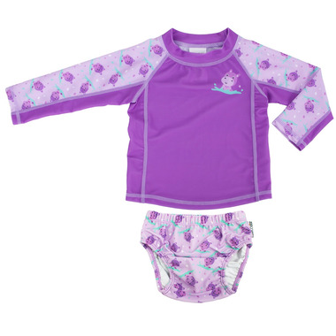 Enjoy long-lasting play at the beach or pool with ZOOCCHINIs adorable Rash Guard Swim Top and Swim Diaper Set. Made with a quick-dry fabric, the swim top features four-way stretch and flat seams for ultimate comfort. The reusable pool-friendly swim diaper has a waterproof exterior layer and is lined with a soft, comfortable mesh liner. ItҒs pool-friendly and designed to be worn alone without need for a diaper. With built-in UPF 50+ sun protection, this easy-wash set is the perfect combo for worry-free fun in the sun!