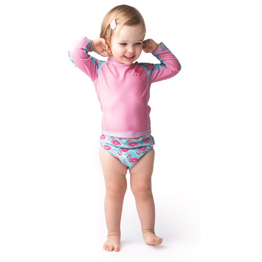 ZOOCCHINI Rashguard Top and Swim Diaper Set Flamingo