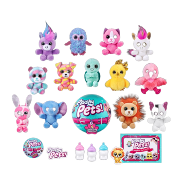 5 Surprise Plushy Pets are the cutest little pets ready to your new BFF! Unwrap, peel and reveal the cutest new surprise pets on the block, ready for you to adopt! You can even find matching stickers and an Adoption Certificate to make it official. Once you unbox your Plushy Pet, the cuteness keeps on coming with a Magic Milk bottle to feed your new little pet and matching stickers too. There are 13 Plushy Pets to collect including Mego the Flamingo, Rory the Lion, Snoz the Elephant and Mittens the Kitten! Or will you find the rare Golden Chick, Chica? Adopt them all!