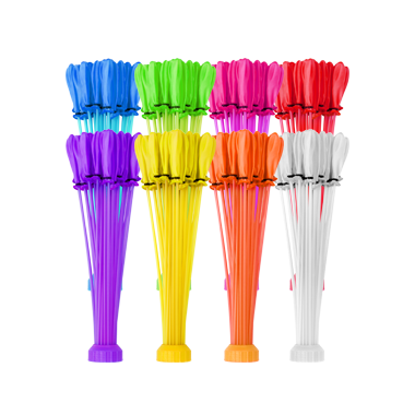 Fill and tie 100 water balloons in less than 60 seconds with these sensational self-tying water balloons! With innovative O-Ring technology and Rapid Fill capabilities, say goodbye to the stress and mess of filling individual water balloons and say hello to never ending splash out loud fun! Simply connect, fill and make hundreds of water balloons with no hand-tying. The summer season’s too short – with Bunch O Balloons you can unleash fun in no time!