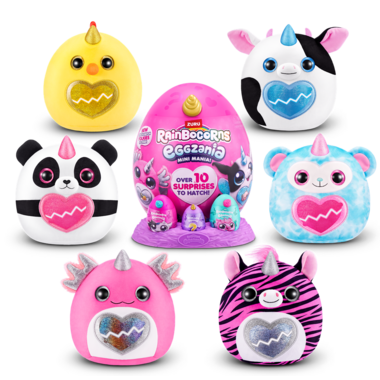 Crack into all-new Eggzania Mini Mania! This egg is oozing with over 10 surprises and brand new Eggzania characters! Remove the egg from the nest to hatch open your super-squishy Eggzania plush! There are 6 Eggzania animals to collect including an axolotl, cow and monkey. Each Eggzania plush comes with wearable Eggzania accessories, stickers, Rainbocorns slime and a Boo-boocorn!