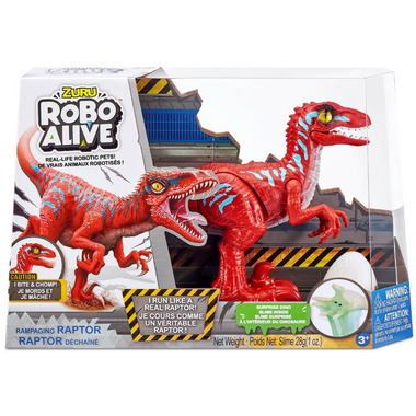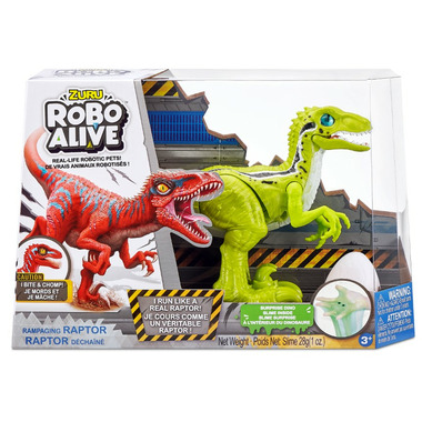 Zuru's new Robo Alive Rampaging Raptor runs and bites like a real dinosaur! With a super realistic design, fast clawing movements and advanced robotic technology, this Raptor outruns all other predators. There's new glow in the dark Dino Slime to discover inside the Dino Egg too! Don't let it catch you and beware of whats inside the Dino Slime Surprise!
