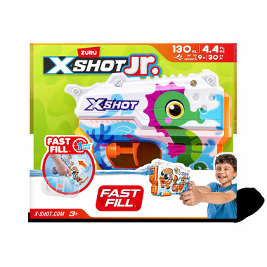 XSHOT Junior Fast-Fill is made for splash-tastic fun for little ones! XSHOT Junior Fast-Fill blasters are designed for small hands, with easy grip design and Fast-Fill technology for easy refill in 1 second, just dunk, fill and close. These blasters hold 130ml / 4.4 Fl Oz.and can blast water up to 9m / 30 feet.