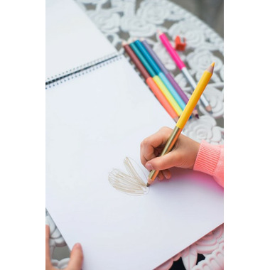 Explore the farthest reaches of the universe with eeboo's Solar System Sketchbook. This high-quality sketchbook is a standard 8.5" x 11" paper size, with 60 matte 95lb pages and durable spiral binding.